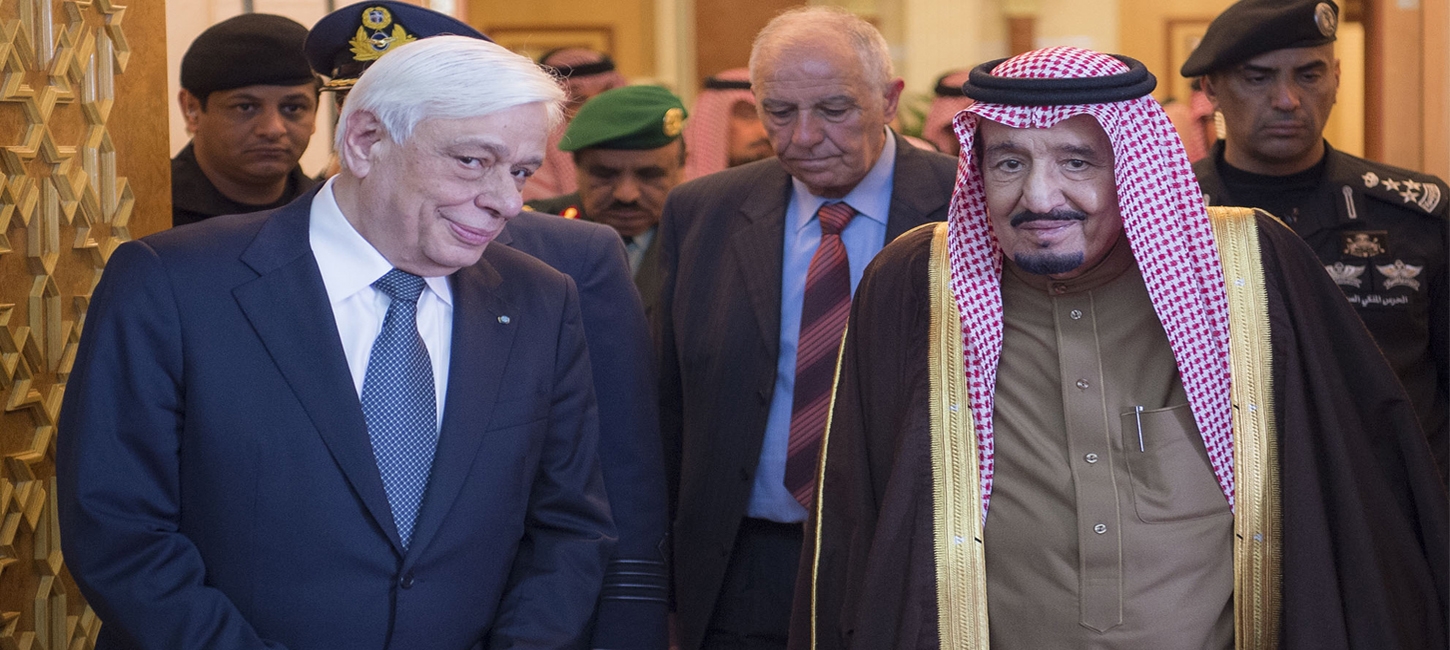 في الثالث من فبراير/شباط الجاري عقد الملك سلمان بن عبد العزيز جلسة مباحثات رسمية مع رئيس الوزراء اليوناني كيرياكوس ميتسوتاكيس، تناولت الجلسة مناقشة مجالات العلاقات الثنائية بين البلدين وسبل تعزيزها ودعمها، إضافة إلى التباحث في مستجدات الأحداث في المنطقة. يأتي هذا اللقاء في ظل تجاذبات واستقطابات حادة تشهدها منطقة شرق